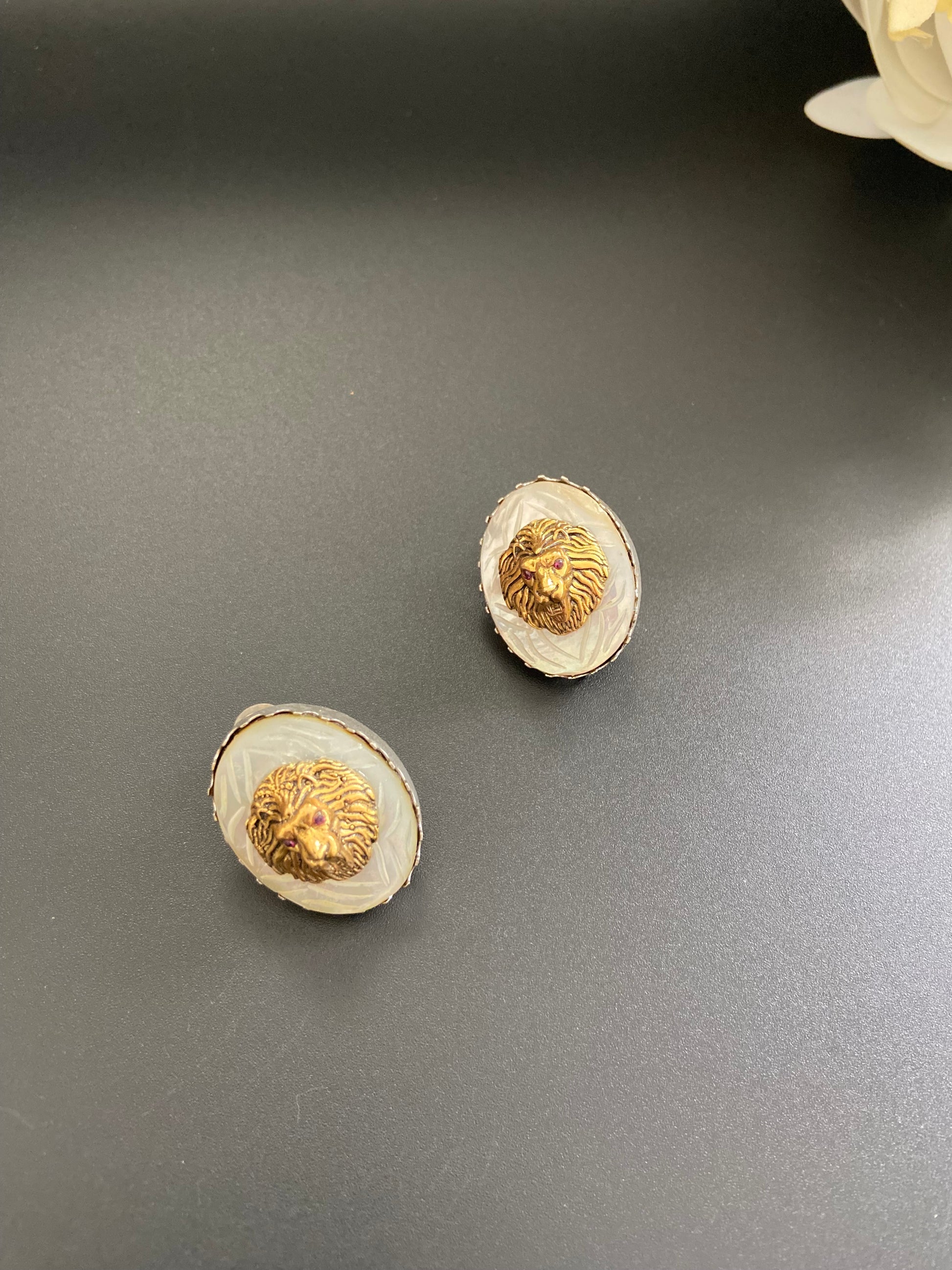 Add a touch of elegance to your outfit with this chic choker set that is adorned with delicate lion motifs. Two toned, hues of silver and gold intertwine beautifully in this gorgeous choker set. Its unique design is adorned with mesmerizing stones and beads, creating an intricate and eye-catching accessory. Comes with matching earrings.