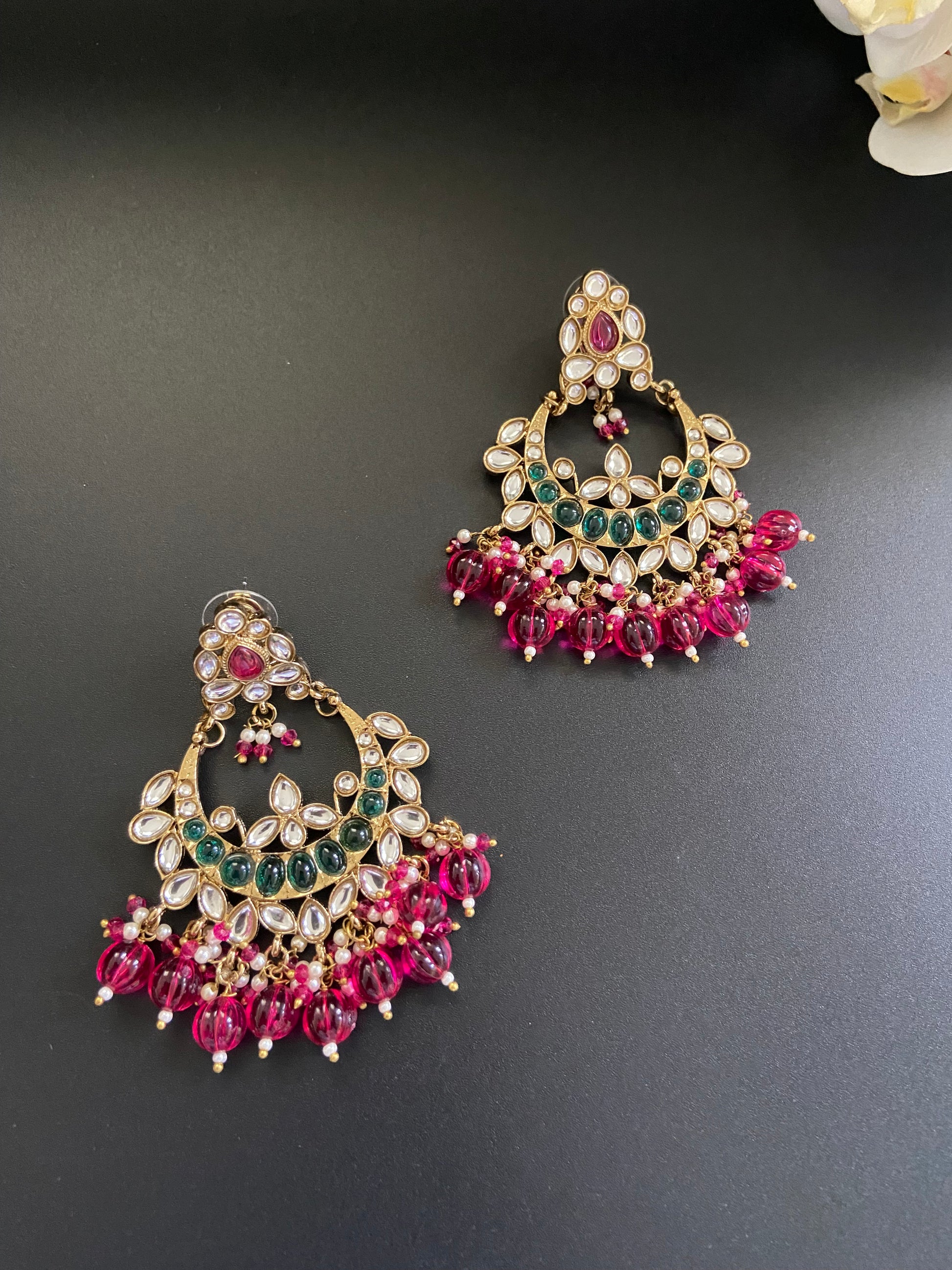 Pair these chandbalis with a pastel saree or an anarkali outfit to let the vibrant green pop.