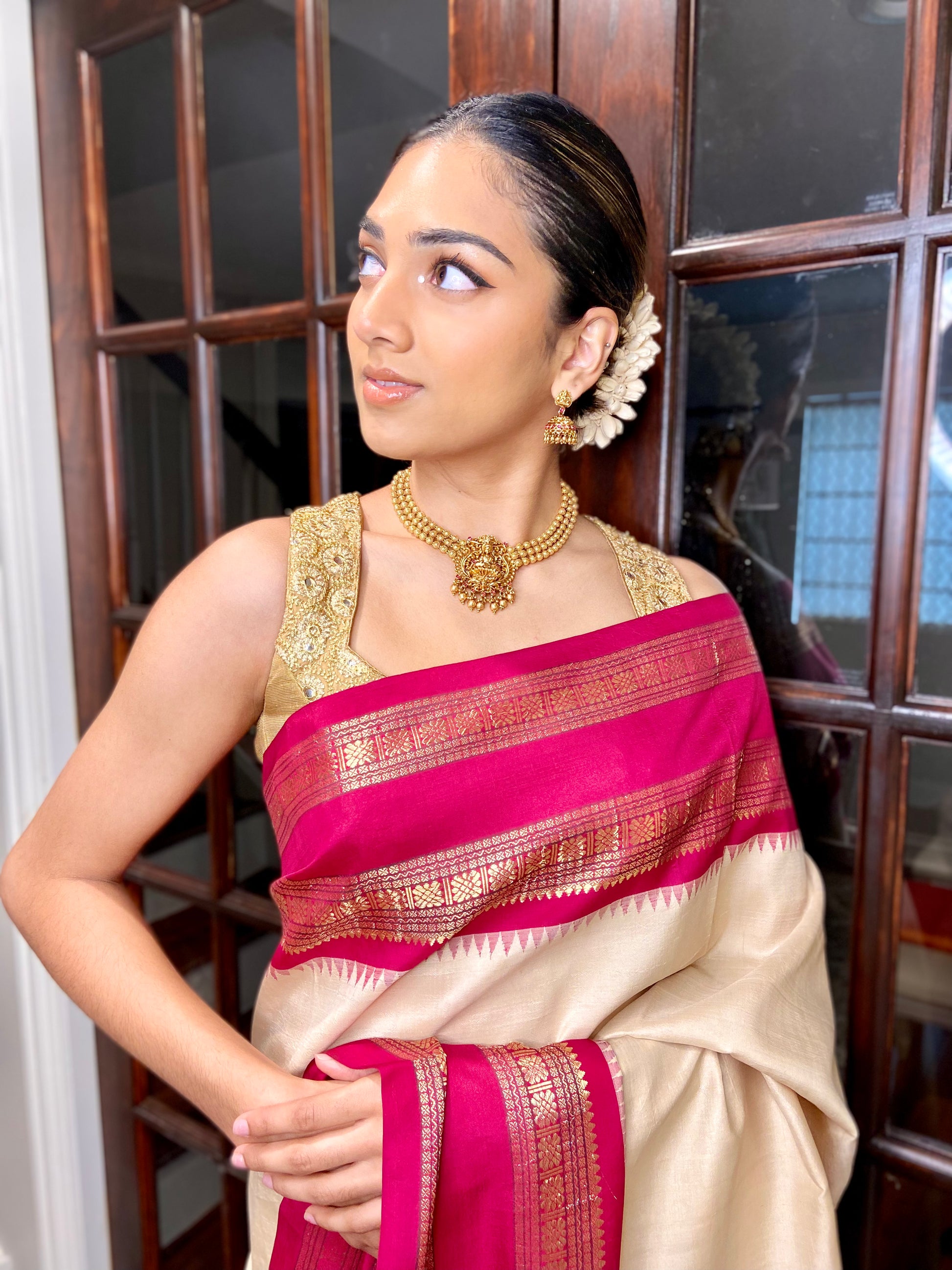 Fashion Tip: Pair it with a classic silk saree and a low bun to get a look that is elegant and unique.