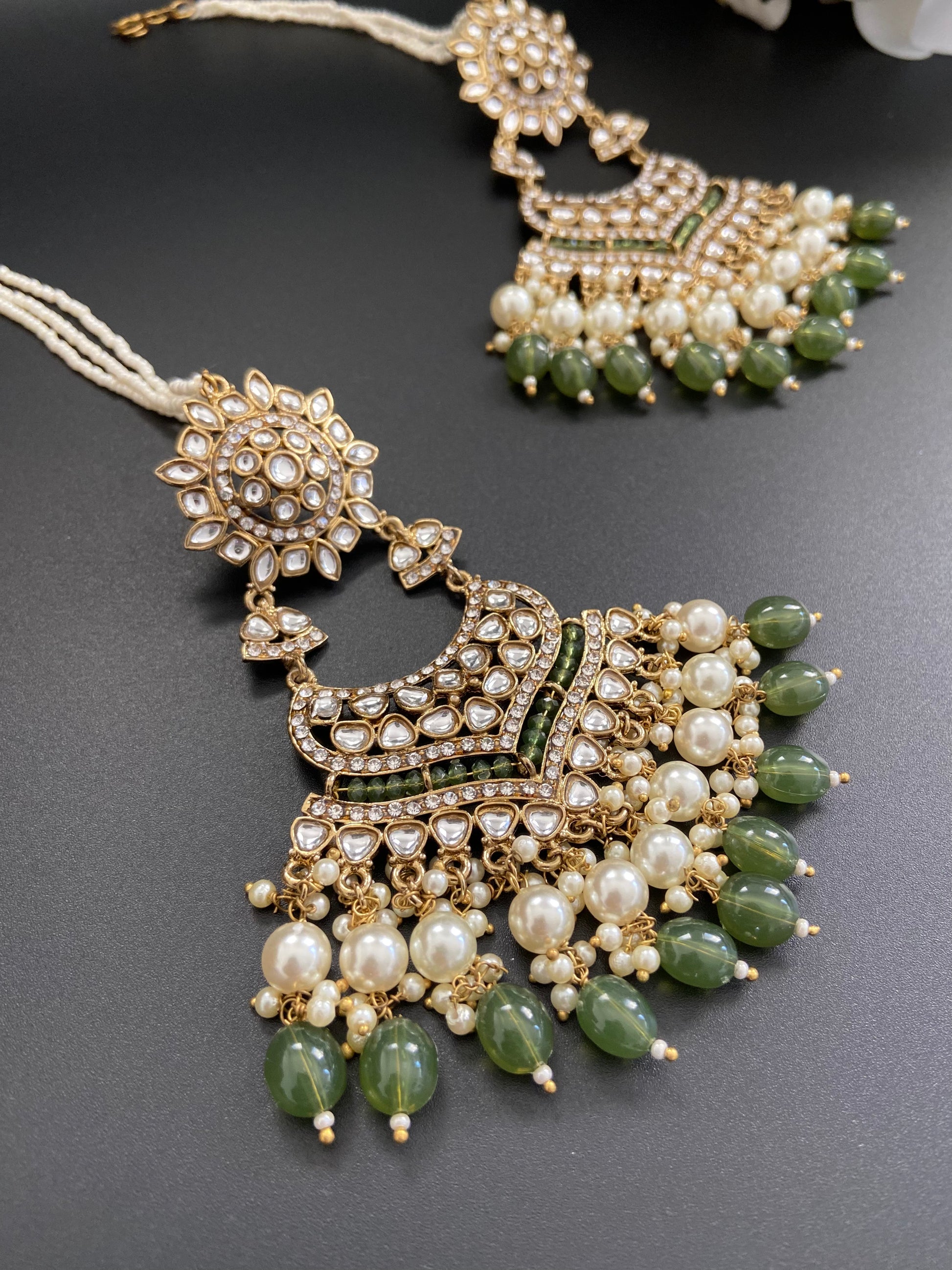 Get ready to make a bold statement with our stunning mix of chandelier and chandbalis earrings, featuring a deep olive green color that exudes opulence and grandeur. From the attached ear support that doubles as a design element to the intricate beads and pearls that come together in a symphony of designs, these earrings are a true masterpiece of artistry and creativity.