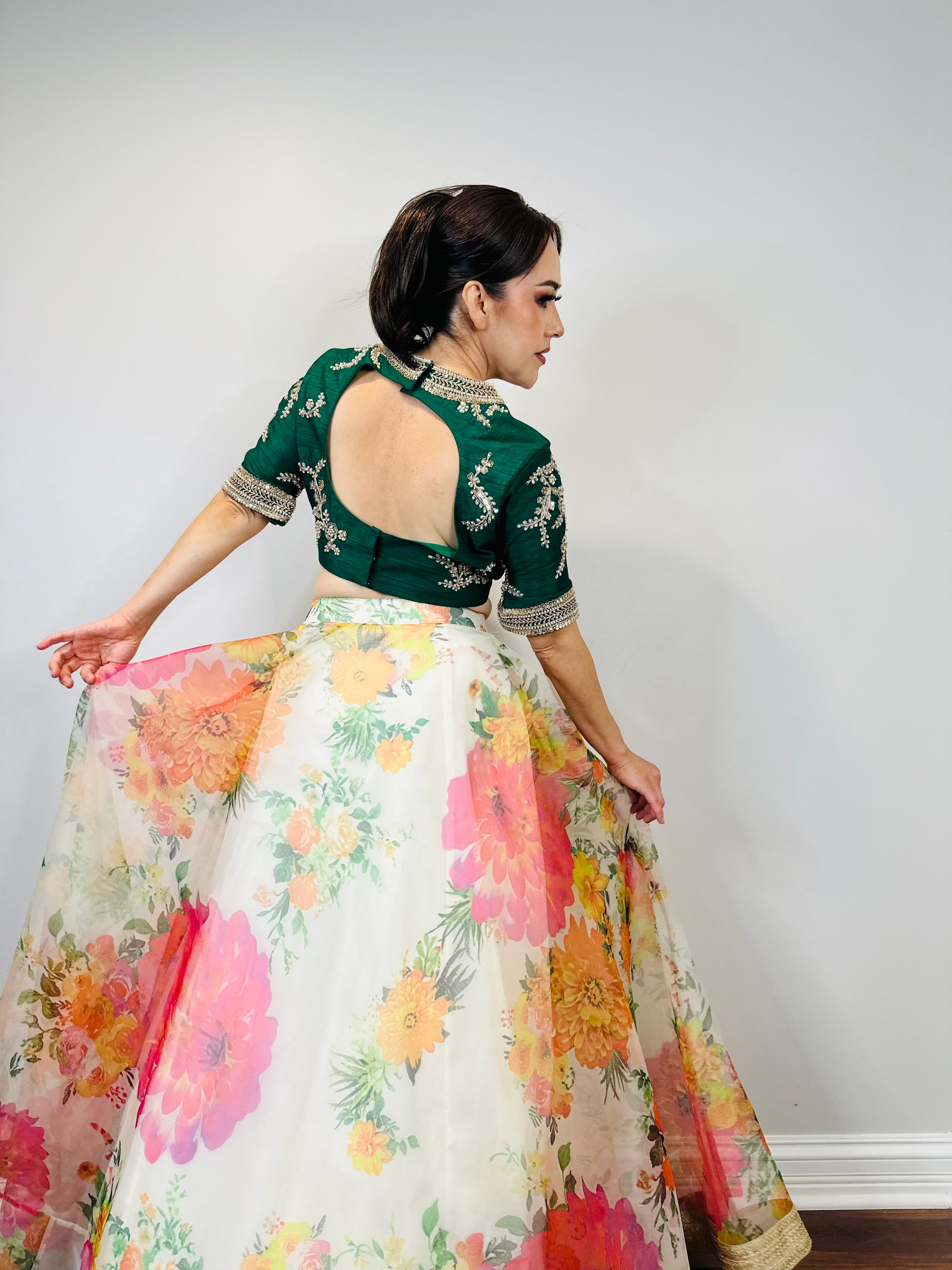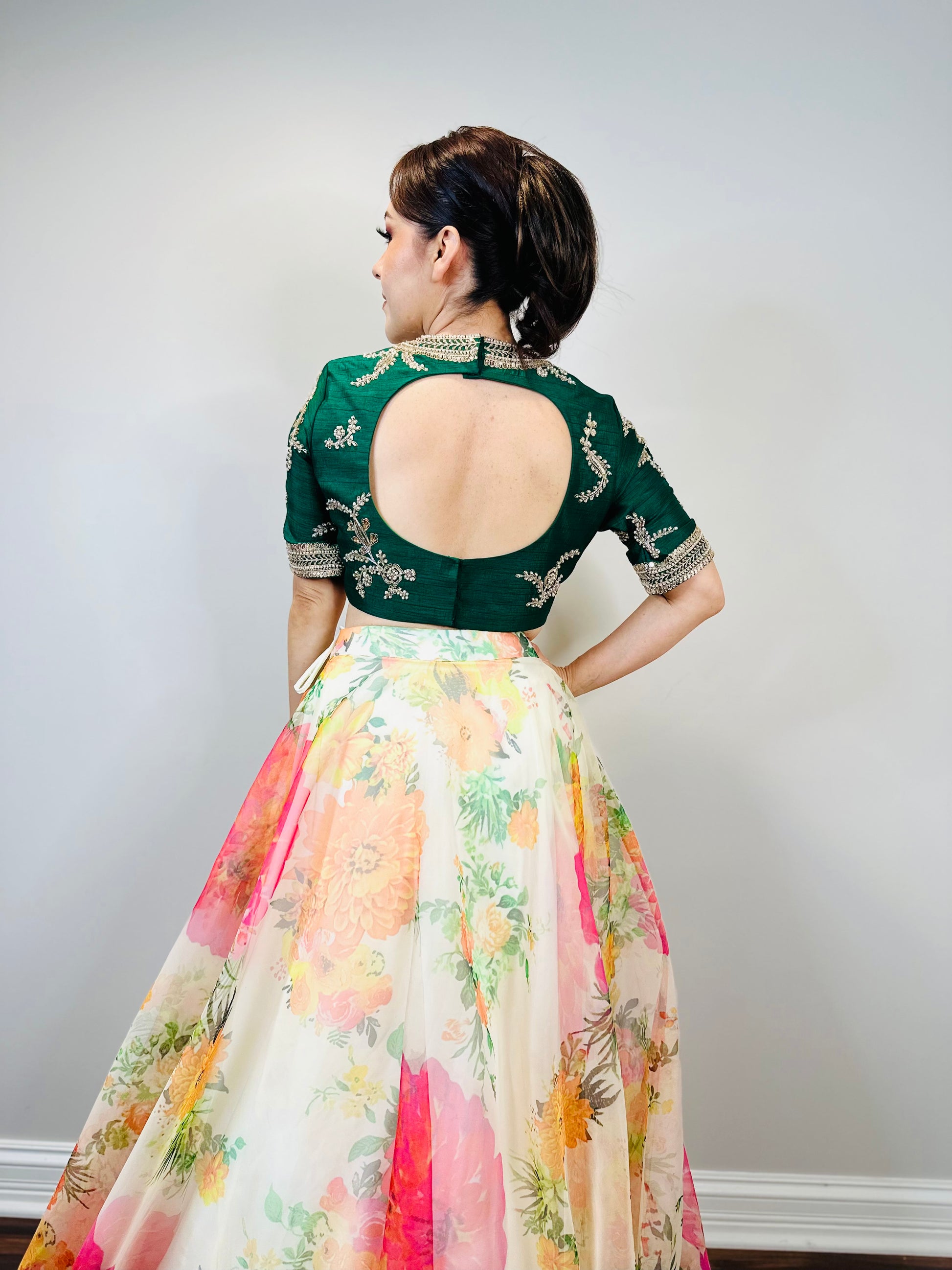 With intricate embroidery and beautiful patterns, this lehenga is as gorgeous as it can get. A thoughtful pick for wedding celebrations.