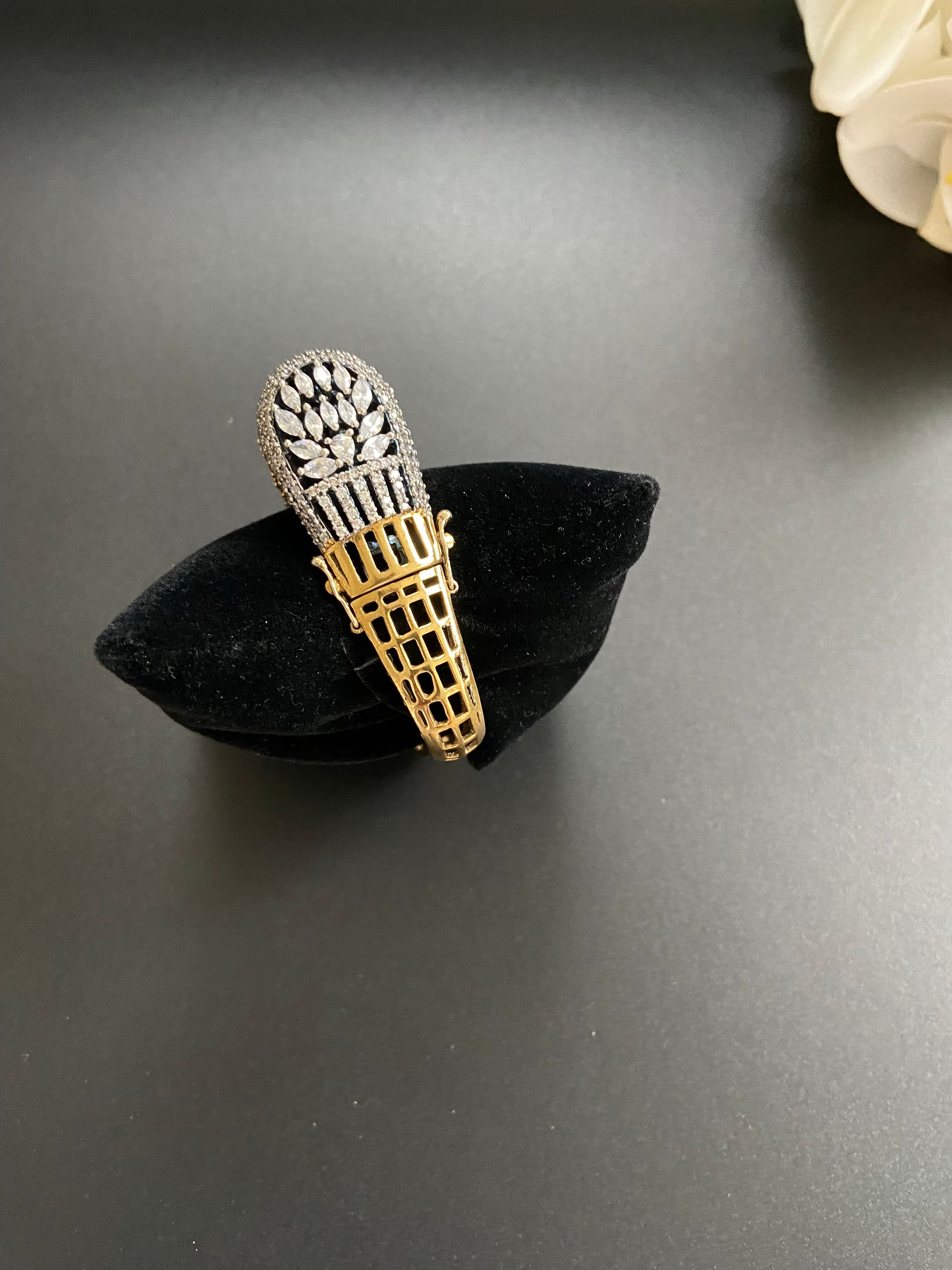 Introducing our square-shaped bangle, a fusion of Victorian elegance and modern flair. This unique design celebrates individuality with intricate details and is embellished with stunning stones. Embrace timeless style with a touch of the contemporary in this statement accessory